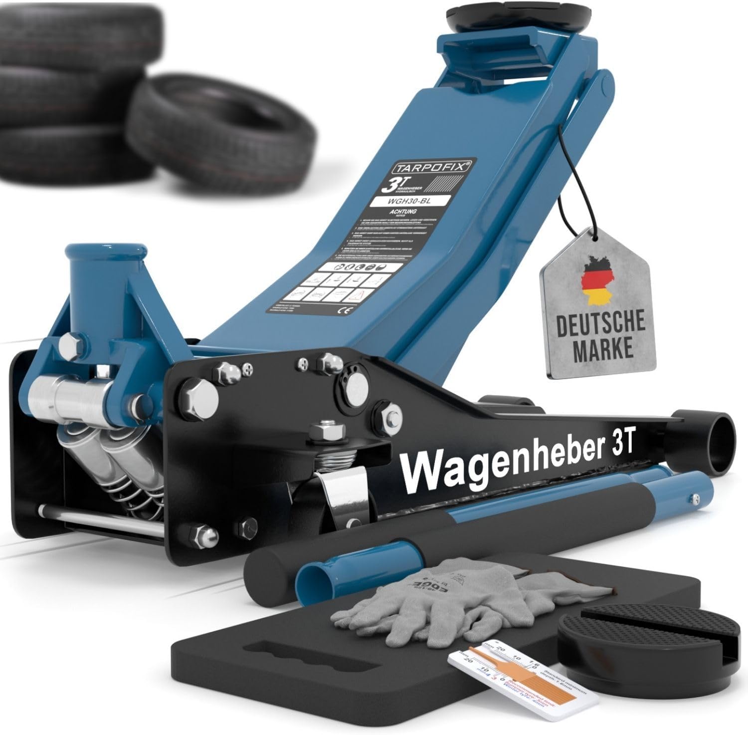 Tarpofix® Hydraulic Car Jack 3t (75-505mm Lifting Height) | Premium Trolley Jack with Double Cylinder | Flat Hydraulic for SUVs & Lowered Cars